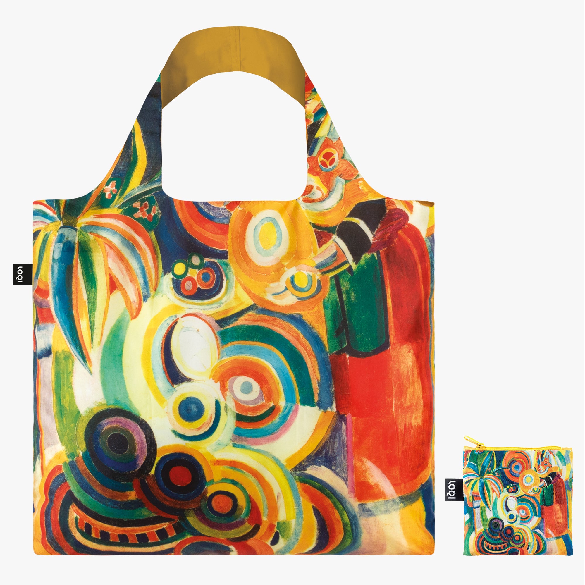 A LOQI bag 100% újrafelhasznált polyesterből készült, nagysága 50x40 cm, összehajtva 11,5x11,5cm. A Robert Delaunay - Portugál nő című, 1916-os festményéből készült verziója a Museum Collection sorozat része.