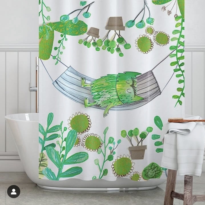 Ez a különleges, textiljellegű zuhanyfüggöny Anna Llenas népszerű színszörny figurájával, függőágyban pihenve, növényekkel körülvéve hoz vidámságot és játékosságot a mindennapokba. Tökéletes választás kádhoz és zuhanyzóhoz egyaránt, hogy a fürdés igazi élmény legyen kicsiknek és nagyoknak. Vidám függőágyas mintája megtölti nyugalommal a fürdőszobát.